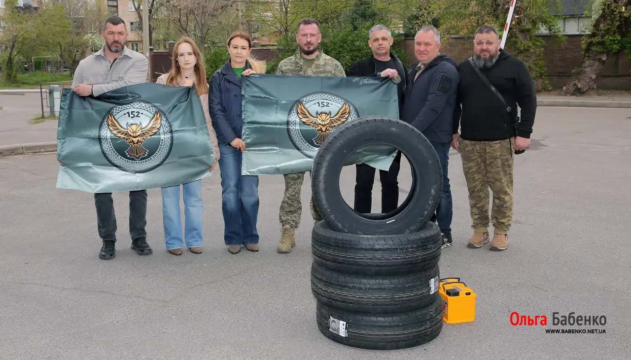 Сьогодні Ольга Бабенко разом з Віталієм Качур передали необхідну допомогу для наших захисників — літню гуму та акумулятор для евакуаційної машини військової частини А4726 (152 окремий розвідувальний батальйон) 11 армійського корпусу. 🇺🇦