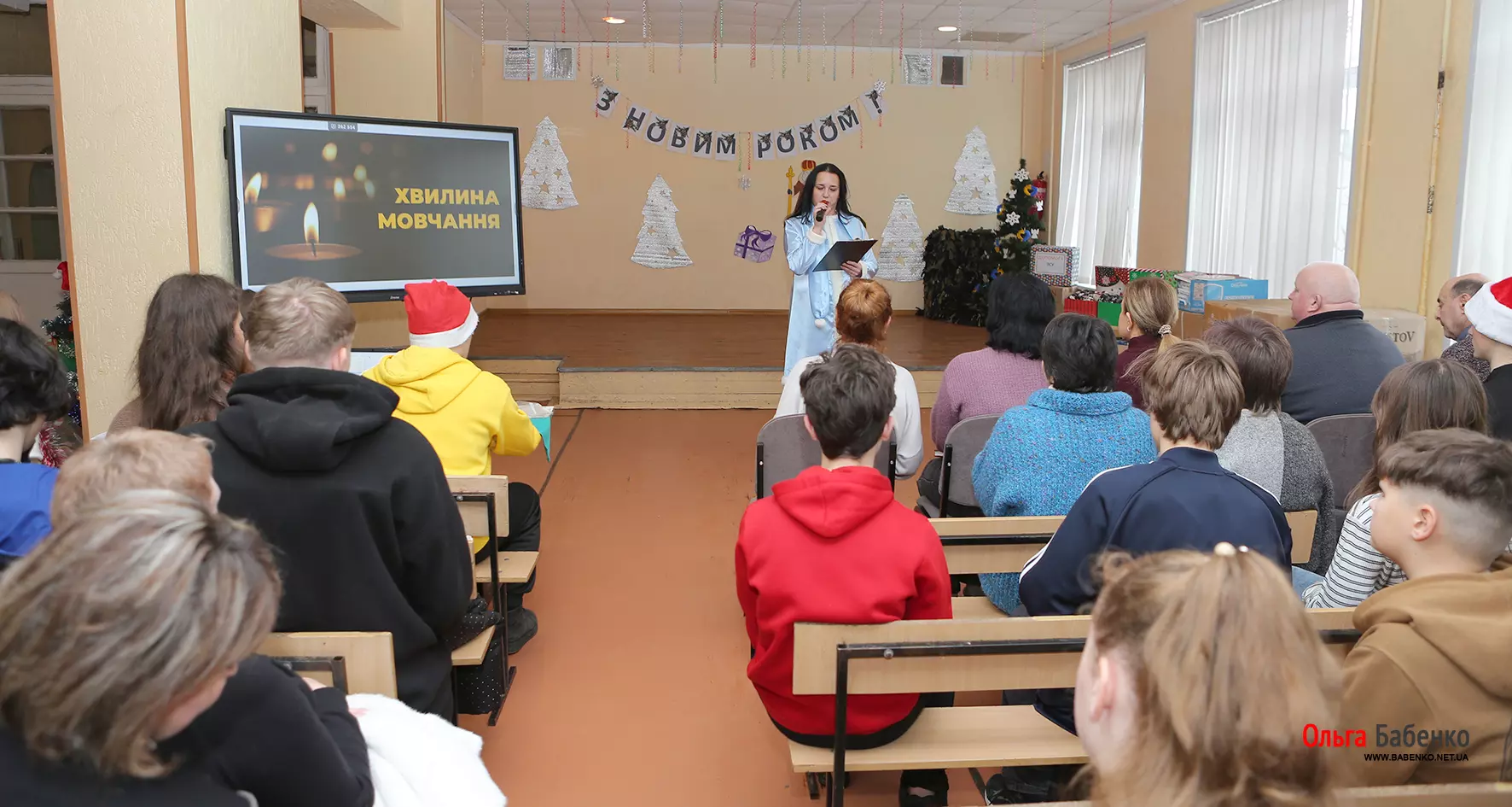 «Сьогодні ми зібралися разом, щоб відчути теплоту, радість і диво різдвяних свят. Це час , коли мрії стають ближчими, а серця наповнюються світлом і добром. Це особливий день, адже ми вітаємо тут вас - дітей героїв, чиї батьки щодня оберігали та продовжують оберігати мир та свободу нашої країни. Саме завдяки їхній мужності та самовідданості ми можемо сьогодні зібратись тут і відчути справжній святковий настрій.» – звернулася Ольга Володимирівна до присутніх в залі.