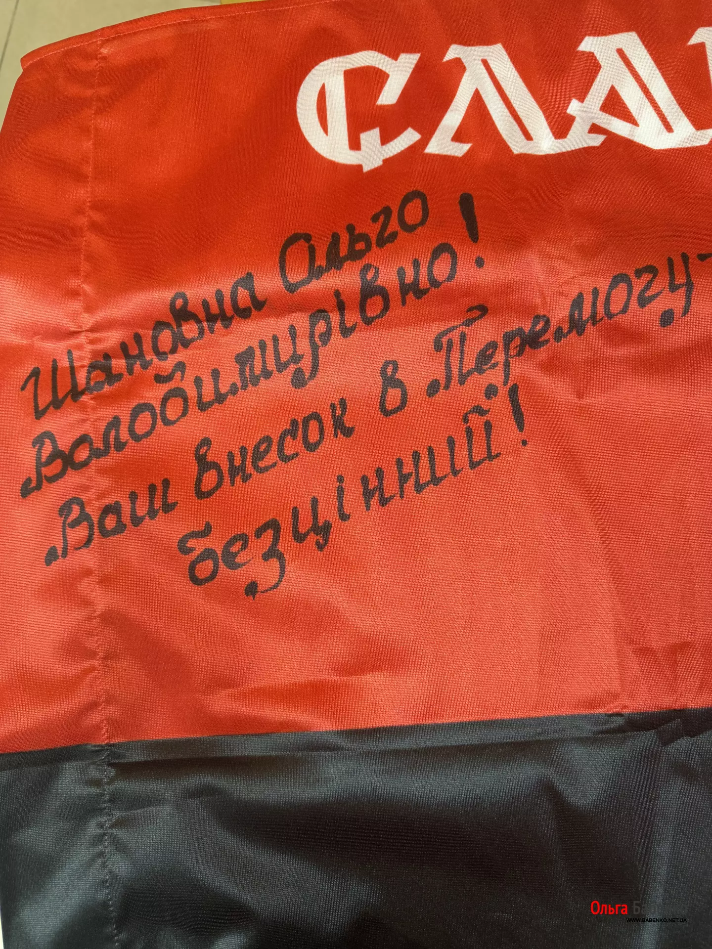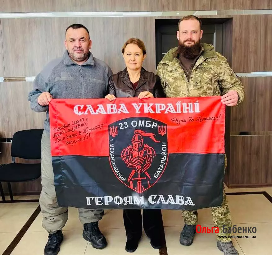 Сьогодні Ольга Бабенко отримала приємний подарунок-подяку Прапор 23 ОМБР 1 механізованого батальйону. Особливо приємно, отримати таку подяку , від воїна Героя Сергія Волкова— розвідника 23-ї ОМБр, який є втіленням незламності українського духу.