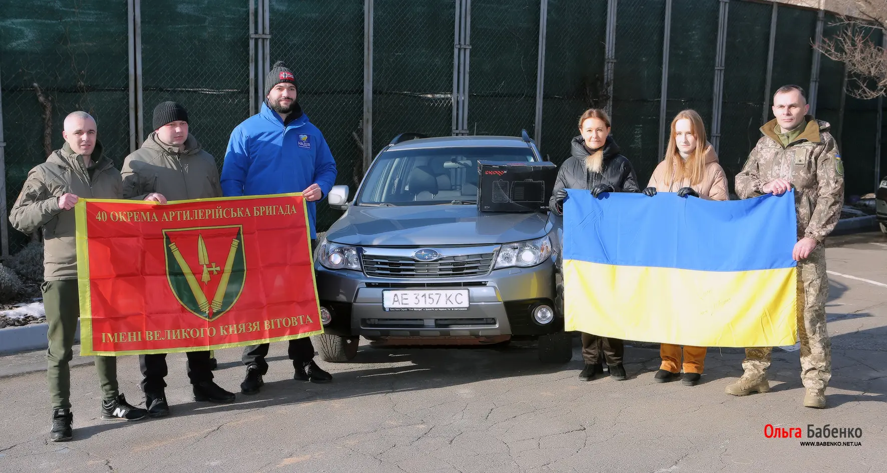 Сьогодні Ольга Бабенко разом з Іван Клєвакін та Марія Бабенко, передали нашим захисникам з 40 окремої артилерійської бригади імені Великого Князя Вітовта, автівку та зварювальний апарат.